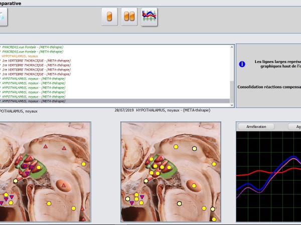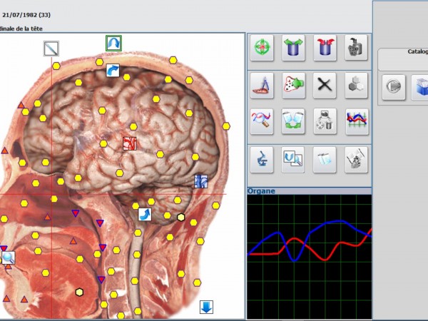 Une séance démarre par une détection avec un casque sur la tête et un capteur dans une main qui augmente encore la précision. Les influx magnétiques enregistrés sont ensuite comparés. Cet appareil capte et analyse chaque onde émise par le corps et transmise au cerveau. Il évalue ainsi le niveau fonctionnel de chaque constituant du corps humain.